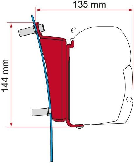 Markisenhalterung zur Montage der Markise am Fahrzeug (Reisemobil, Caravan, Kastenwagen oder Camping-Bus) für Markisentypen: F45 (sowie ältere Modelle wie F70) für Fahrzeugmodelle: Ford Transit ab Bj. 2014 Inhalt: 2 Halterungen à 25 cm + 1 Halterung á 8 cm