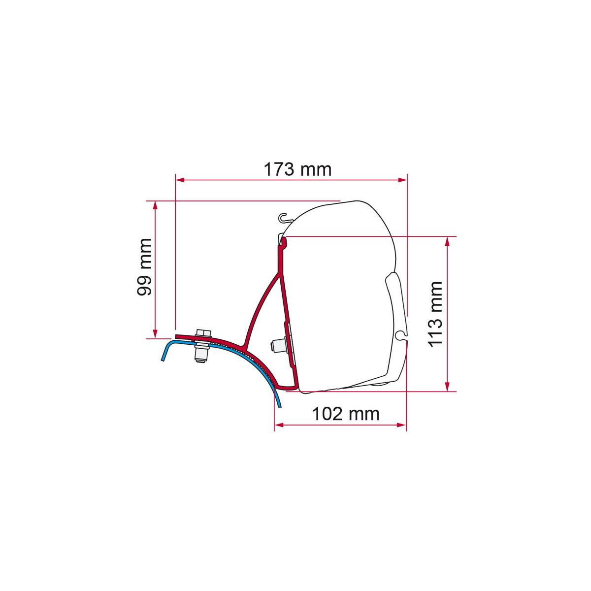 Adapter-Set für Fiamma Markise F45 passend für Montage an Trafic / Vivaro A / Primastar (mit langem Radstand bei F45 260cm) für Markisentyp: F45S, F45L (sowie Vorgängermodelle F45i / F45iL / F45Ti / F45TiL / F70) für Fahrzeugmodell: Renault Trafic / Opel Vivaro / Nissan Primastar mit Bj. 2001 – 2014 (H1 – L1/L2) Gewicht: 3kg Inhalt: 2 Halterungen à 16cm Fiamma Art.Nr. 98655-854