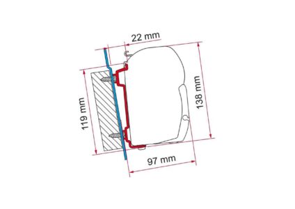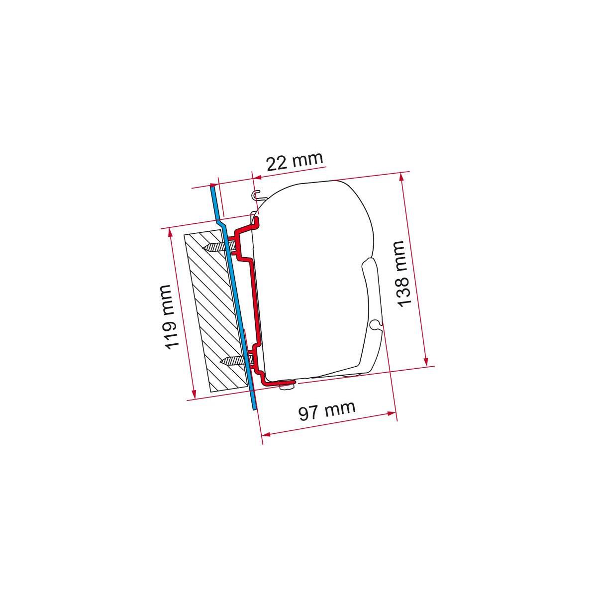 Markisenhalterung zur Montage der Markise am Fahrzeug (Reisemobil, Caravan, Kastenwagen oder Camping-Bus) für Markisentyp: F45S, F45L, F70 (sowie Vorgängermodelle F45i / F45iL / F45Ti / F45TiL) für Fahrzeugmodelle: Ford Transit High Roof (Hochdach), Mercedes Sprinter / VW Crafter High Roof (Hochdach) ab Bj. 2006 H2 bis Bj. 2014 / H3 ab Bj. 2014 Gewicht:1 kg Inhalt: 2 Halteplatten à 40cm Fiamma Art.Nr. 98655-741