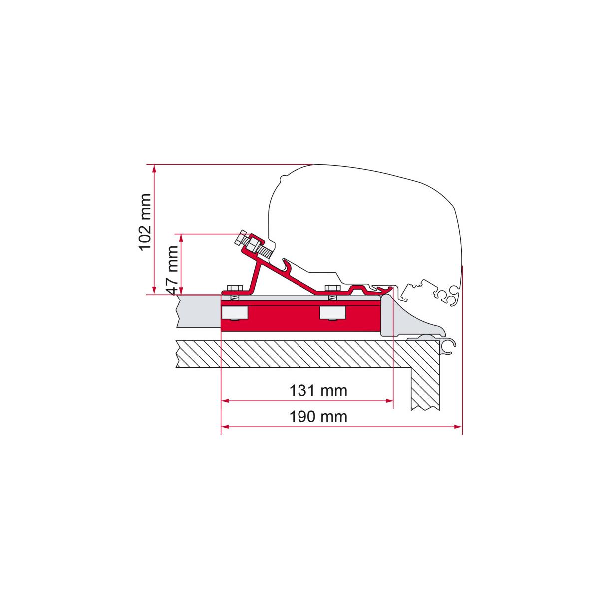 Markisenadapter zur Montage der Markise am Fahrzeug (Reisemobil, Caravan, Kastenwagen oder Camping-Bus) Nur in Verbindung mit dem Fixing Bar Pro L verwenden (98655-295) für Markisentyp: F80S, F65S, F65L (sowie Vorgängerversion F65) für Fahrzeugmodell: universell – für Dachträger (Fixing Bar) Breite: 3x 20 cm Gewicht: 3.5kg Lieferumfang: 3 x Halteplatten Fiamma Art.Nr.98655-384
