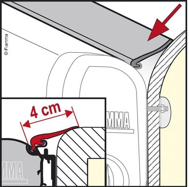 Verhindert, dass Wasser zwischen Fahrzeugwand und Markise läuft. Für Markisen, die mit bis zu 4cm abstehenden Adaptern oder an gewölbten Wänden montiert sind.