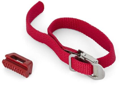 Ein 39 cm langer Gurt mit entsprechendem Schieber zur zusätzlichen Schließung des Gehäusekastens für mehr Sicherheit bei unebenen Strecken.