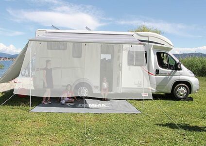 Vorderwand aus Maschengewebe. Spendet zusätzlich Schatten bei tiefstehender Sonne und absorbiert 85% des Lichts. Zum Einziehen in die Kederschiene. Aufrollbar mit praktischer Clip-Befestigung. Passend für alle Markisen mit Keder im Frontprofil. Technische Daten: Länge (A): +/-100cm Höhe: 190 cm Gewicht: 0,5kg Lieferumfang: Vorderwand mit Spannbändern und Erdnägeln