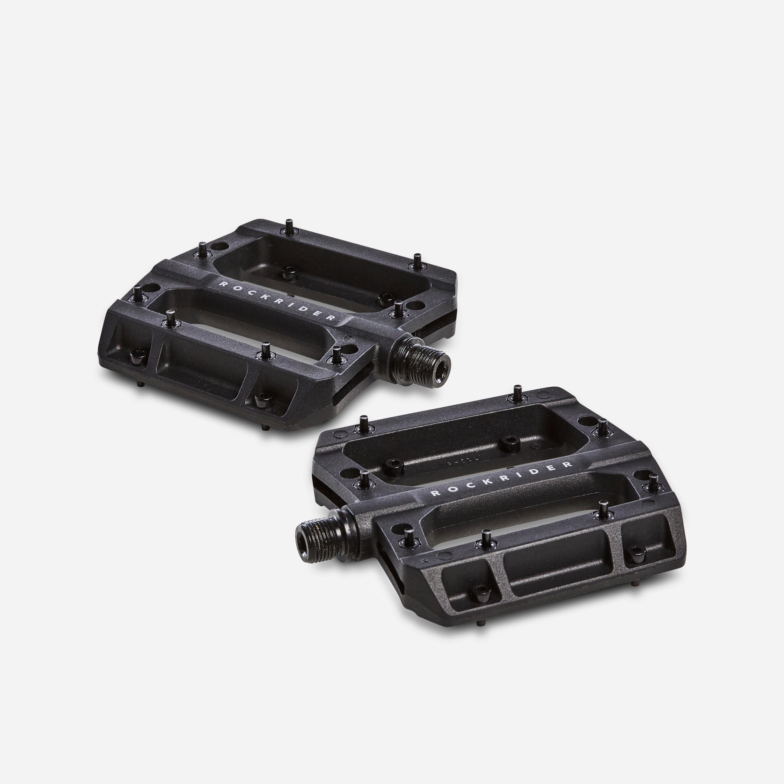 Dank der breiten Auflagefläche und der Pins aus Metall bieten die Flachpedale MTB 900 aus Harz Stabilität, tragen zu einer guten Kontrolle des Fahrrads bei und sind dabei gleichzeitig leicht. Grip::Metallpins sorgen für maximalen Grip |Stabilität::Große Auflagefläche, flach: Stabilität und Kontrolle|Stabilität::Achse aus CrMo-Stahl |Gewicht::Gewicht: 360 g (pro Paar)