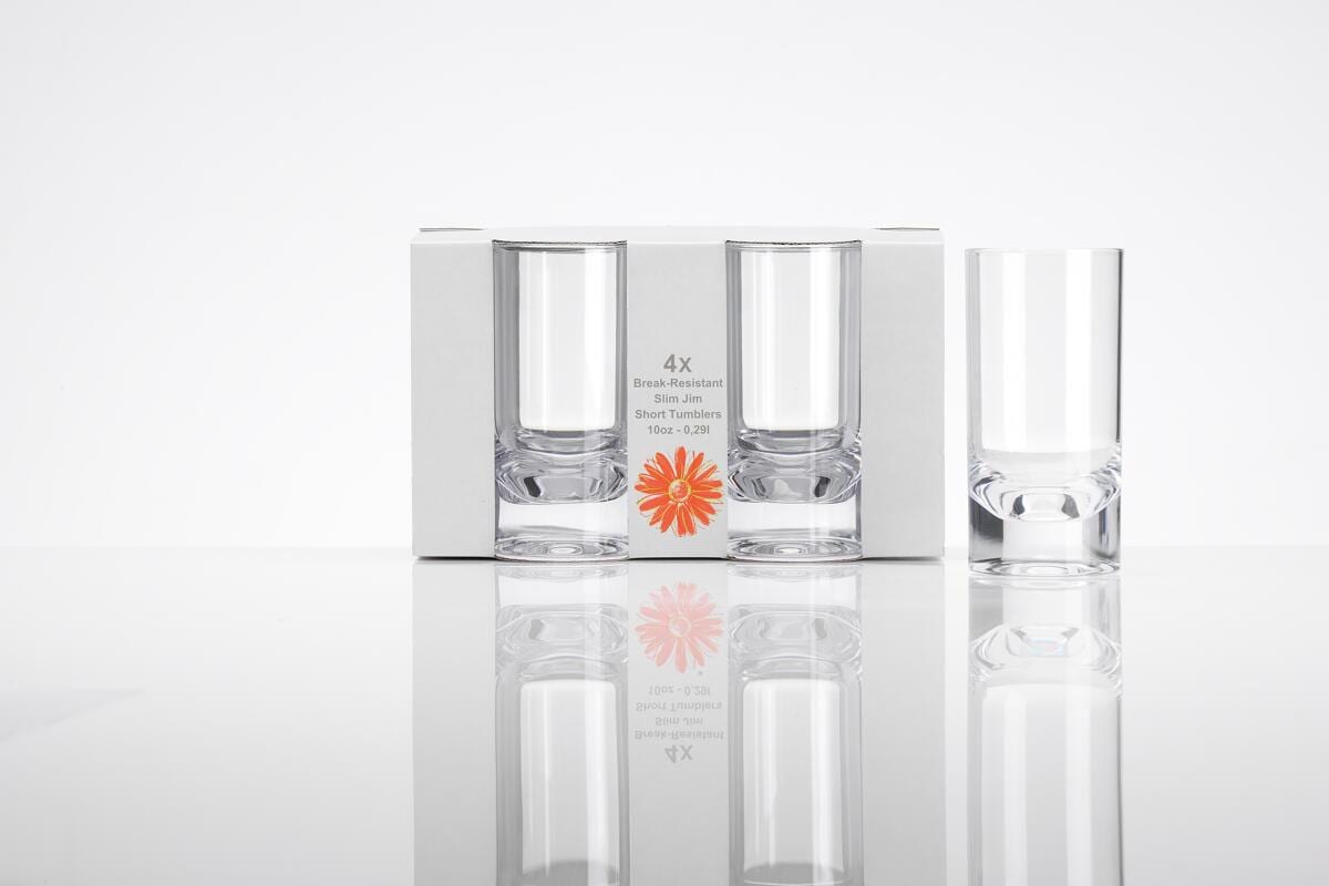 Praktisch unzerbrechliche luxuriöse Longdrinkgläser. Technische Daten: Material: Acryl Volumen: 290 ml Farbe: transparent Lieferumfang: 4 Longdrinkglas