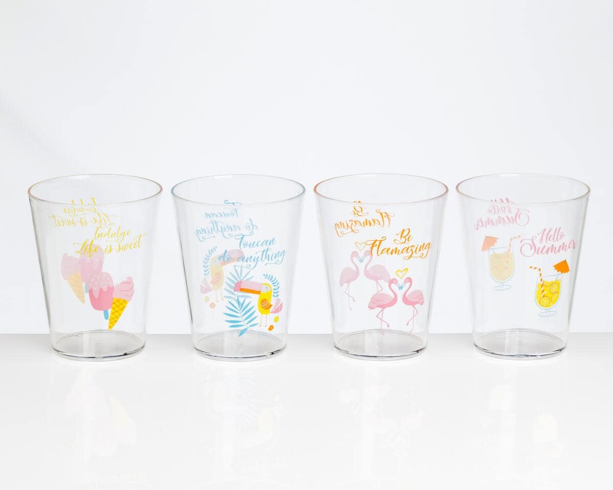 Flamefield Hello Summer Trinkglas-Set, Acryl, 4-teilig