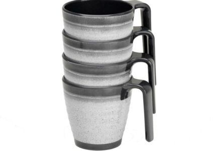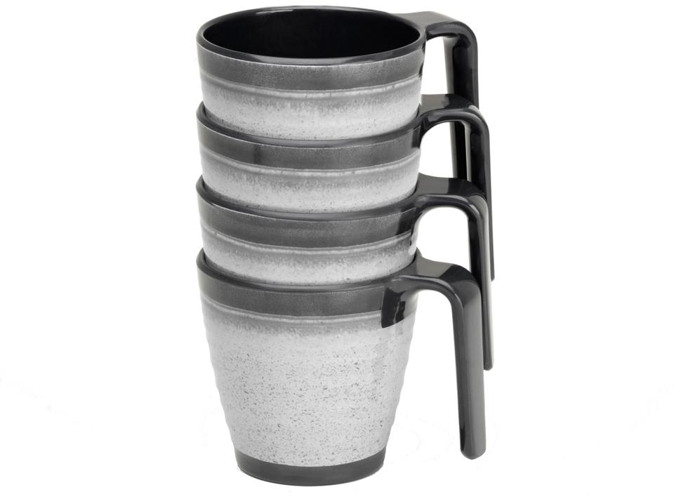4-teiliges Set bestehend aus 4 Henkelbechern. Technische Daten: Material: Melamin Volumen: 325 ml je Tasse