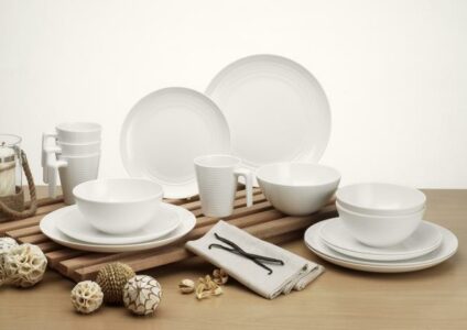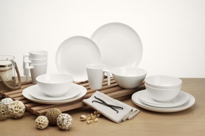 Das 16-teiliges Geschirrset eignet sich für 4 Personen. Das Set ist spülmaschinentauglich bei niedriger Temperatur, jedoch nicht für die Mikrowelle geeignet. sehr flach stapelbar platzsparend zu verstauen edles Design lebensmittelecht Technische Daten: Farbe: Vanilla Material: 100% Melamin Gewicht: 2,8 kg Lieferumfang: 4 Essteller Ø 26 cm 4 Dessertteller Ø 21 cm 4 Schüsseln Ø 15 cm 4 Henkelbecher 0,3 L, Höhe 10 cm, Ø 8,5 cm