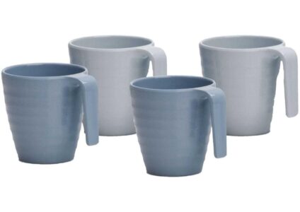 Schönes Tassenset in schlichten Blautönen aus 100% Melamin. stapelbar hitzebeständig bis 70°C spülmaschinengeeignet BPA frei Technische Daten: Volumen: 325 ml je Tasse Material: Melamin