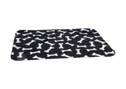 Milda Hundedecke aus Fleece mit Knochenmotiv. Superweich Alle Rassen Waschbar bei 30°C Technische Daten: Material: 100% Polyester Länge:100 cm Brreite: 70 cm Farbe: schwarz Lieferumfang: Hunde-Fleecedecke