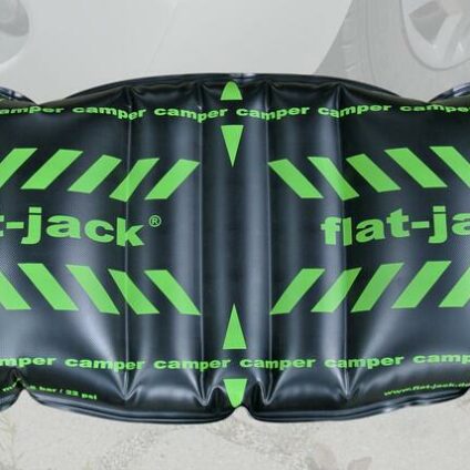 Das flat-jack camper Luftkissen ist der ideale Partner für Wohnmobil/Wohnwagen. Das Reifen-Luftkissen wird mit einer Fuß-Pumpe oder einem Minikompressor aufgepumpt. flat-jack camper sind für Wohnmobile bis 7,5t und für Reifenbreiten bis 255mm geeignet. Mit spezieller Innenkonstruktion für Campingfahrzeuge und daher auch bei unebenen Gelände zum Niveauausgleich verwendbar (ein flat-jack Kissen für bis zu 6cm, zwei übereinander gelegte Luftkissen bis zu 12cm Höhehnausgleich). schützt Reifen vor…