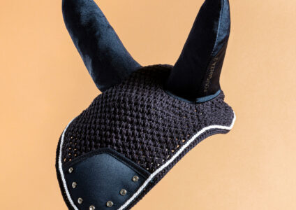 Unser Reitsportteam hat diese Fliegenhaube 500 Strass für Reiter entwickelt, die eine elegante und komfortable Haube für ihr Pferd suchen.