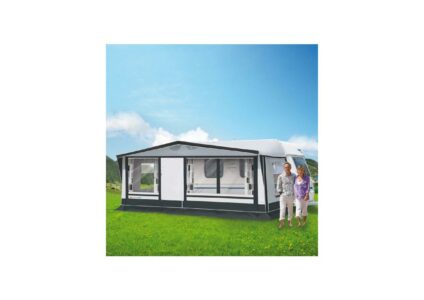 Das Superzelt für Preisbewusste mit Sturm-Abspannmöglichkeiten ringsum. Innen abspannbar mit flexiblen Abspannleitern. Inklusive Doppelkeder zur schraubfreien Montage am Wohnwagen.Vorderwand: aus 2 Teilen bestehend, herausnehmbar und vom Dach abnehmbar (Verandaeffekt). Eingangstür. Gr. 4 mit zwei Fenstern und Gr. 5 bis 9 mit drei Fenstern in der Vorderwand.Seitenwände: mit Gaze-/Lüftungsfenster ausgestattet und mit Prägefolienfensterklappen verschließbar. Tür in der Seitenwand seitlich rückrollbar. Ein…