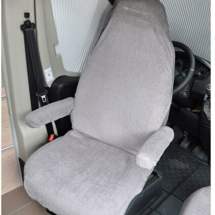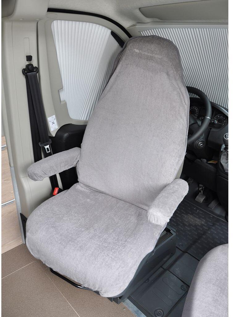 Universell für Fiat Ducato, VW-Busse und teilweise auch für vollintegrierte Fahrzeuge passender Frottee-Sitzbezug für Fahrer- und Beifahrersitz. Der optimale Sitz wird durch ein auf der Rückseite angebrachtes elastisches Band gewährleistet, das den Bezug jeder Sitzform anpasst. Lieferung erfolgt inklusive Armlehnenbezüge. Technische Daten: Material: 100 % Baumwollmischgewebe (waschbar bei 30 °C) Maße: 165 x 80 cm (L x B) Gewicht 500 g Lieferumfang: 1x Frottee-Sitzbezug