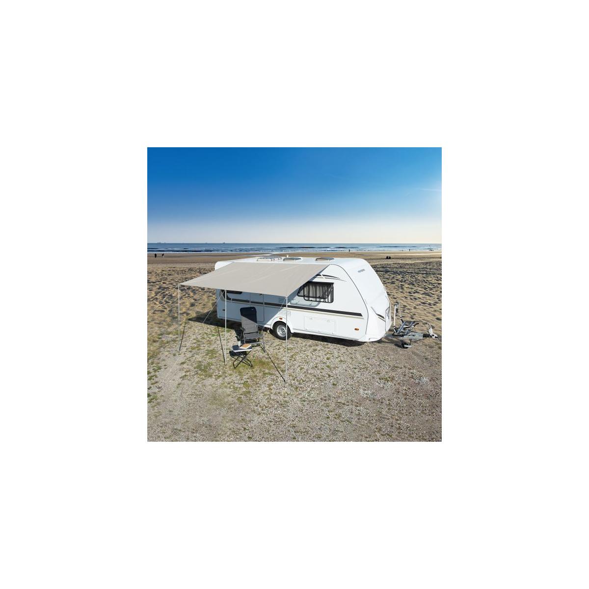 Das vielseitige Sonnendach Playa dient nicht nur als angenehmer Schattenspender vor dem Wohnwagen, sondern auch als Überdachung für den Gasflaschenkasten und der Deichsel am Bug. Aber auch am Heck des Wohnwagens als Carport für Ihr Auto leistet Ihnen dieses Vordach gute Dienste. Schatten für große und kleine Fahrzeuge wasserabweisendes, pflegeleichtes und reißfestes Tuch auch als Überdachung an Heck oder Bug geeignet Technische Daten: Material: beschichtetes Polyestergewebe Gestänge: Aluminium Maße (L x…