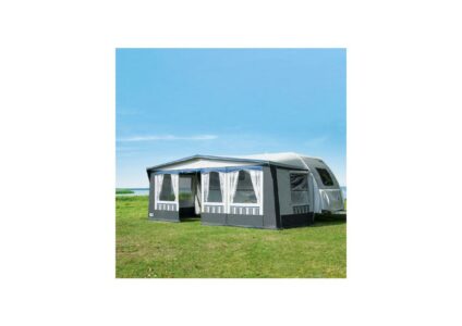 Das Voll-PVC Vorzelt für den anspruchsvollen Dauer- oder Saisoncamper oder den qualitäts- und komfortbewussten Camper. Ringsum Fensterklappen aus Planenstoff. Schwere und abgedeckte Reißverschlüsse. Doppelte Gardinenleiste und Gardinen mit Rollenaufhängung sowie doppelter Erdstreifen. Hohlsaumtaschen im Vordach. Klettbandkanäle für Sturmfestigkeit. Passend auch für Fahrzeuge mit aerodynamischer Bugform (Knaus, Bürstner, Eifelland usw.).Vorderwand: bestehend aus vier Teilen. Jedes Teil ist einzeln…
