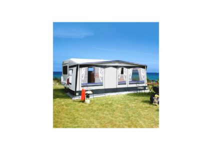 Siebenteiliges Vorzelt für alle, die mehr wollen. Außenliegender Erdstreifen, innen abspannbar, Sturmlaschen in der Vorderwand. Auch als Sonnendach nutzbar, da Seitenwände und Vorderwand herausnehmbar sind. Abgedeckte Reißverschlüsse. Passend auch für Fahrzeuge mit aerodynamischer Bugform. Serienmäßig mit überschweißter Giebel-Dachnaht. Vorderwand: aus 4 Teilen bestehend, herausnehmbar und zur Veranda abrollbar. Fenstersegmente mit blickdichten PVC-Klappen. Inkl. Gardinen im passenden Design. Die…