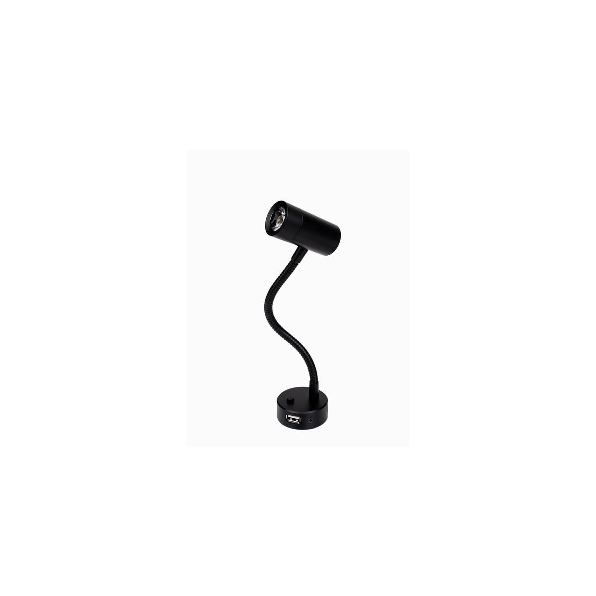 Aluminium LED-Aufbauspot mit Ein-/aus- Schalter, flexiblem Arm und USB Anschluss im Sockel. Mit flexiblem Arm USB-Anschluss im Sockel (5 V / 2 A) Technische Daten: Energieeffizienzklasse: G Spannung: 12 V Nennleistung: 1,5 W Lichtleistung: 100 Lumen Farbe: 3000 – 3200 K RA- Index: 80 Lebensdauer: 30.000 Stunden Maße: 60 x 210 x 50 mm Farbe: satin schwarz Lieferumfang: 1x LED-Leseleuchte