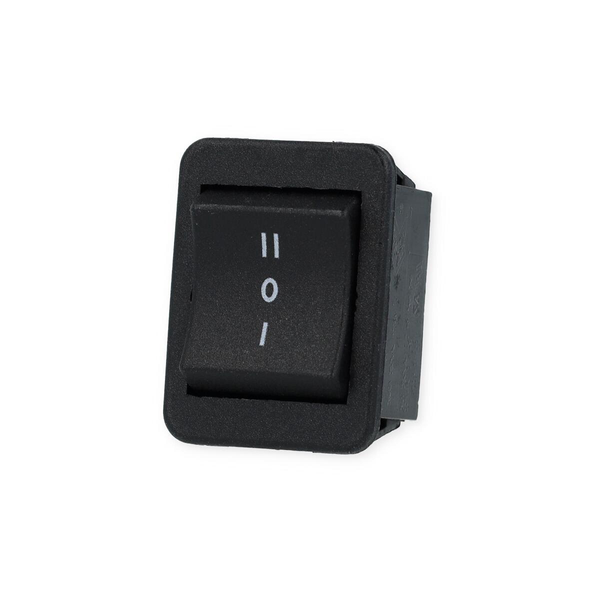 Einbau Wippschalter für Vorzeltleuchten. Funktion: rastend | 0 | rastend Anschluss: Flachstecker 4,8 mm Frontplatten-Ausschnitt: T 30 x B 22 mm + H 2,5 mm Technische Daten: Nennspannung: (AC) 230 V Nennstrom: 16 A Maße (B x T x H): 3 × 1,5 × 2 cm Packmaß: 3 × 2,4 × 3,1 cm Gewicht: 13 g