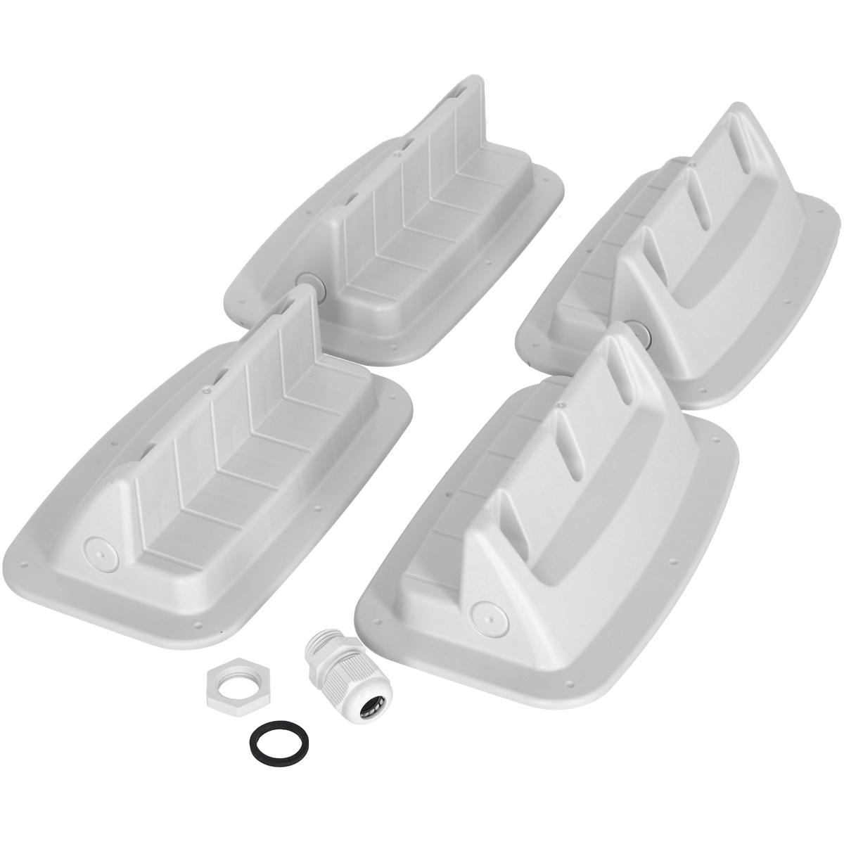Solarmodulhalter mit Kabeldurchführung Individueller Einsatz (Wohnmobil, Wohnwagen, Flachdach) Extrem belastbar (TÜV-geprüfte Sicherheit) Geringes Gewicht: ca. 88 g pro Stück Alterungsbeständiger Hochleistungskunststoff Zentrierrillen als Montagehilfe Aerodynamisches Design keine zusätzliche Dachdurchführung nötig Traglast bis zu 7 kg pro Solarpanel. Das Set besteht aus 4 Halterungen (1x mit Kabeldurchlass M16)