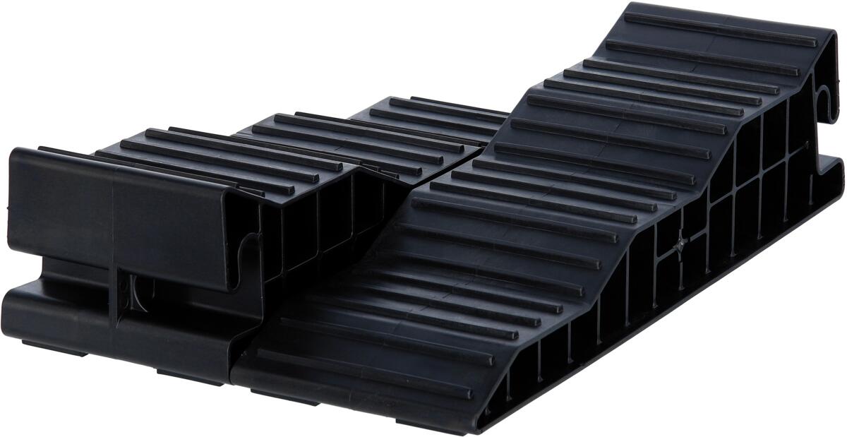 Auffahrkeile Ideal für Fahrzeuge bis 8 t zulässigem Gewicht. Stufenloses Auffahren in 3 Höhen. Ausgleich von Bodenunebenheiten für Reisemobile und Wohnmobile Wohnwagen ausrichten Nivelliert Campingbusse Gerades Fahrzeug wichtig für optimales Kochen, Schlafen und Duschen Technische Daten Tragfähigkeit: 2 t Maße (B x T x H): 53 × 17,3 × 13 cm Höhe 1: 45 mm Höhe 2: 75 mm Höhe 3: 105 mm Packmaß: 17,5 × 54 × 15 cm Gewicht: 1,8 kg Lieferumfang: 2 Stufenkeile inklusive Transporttasche
