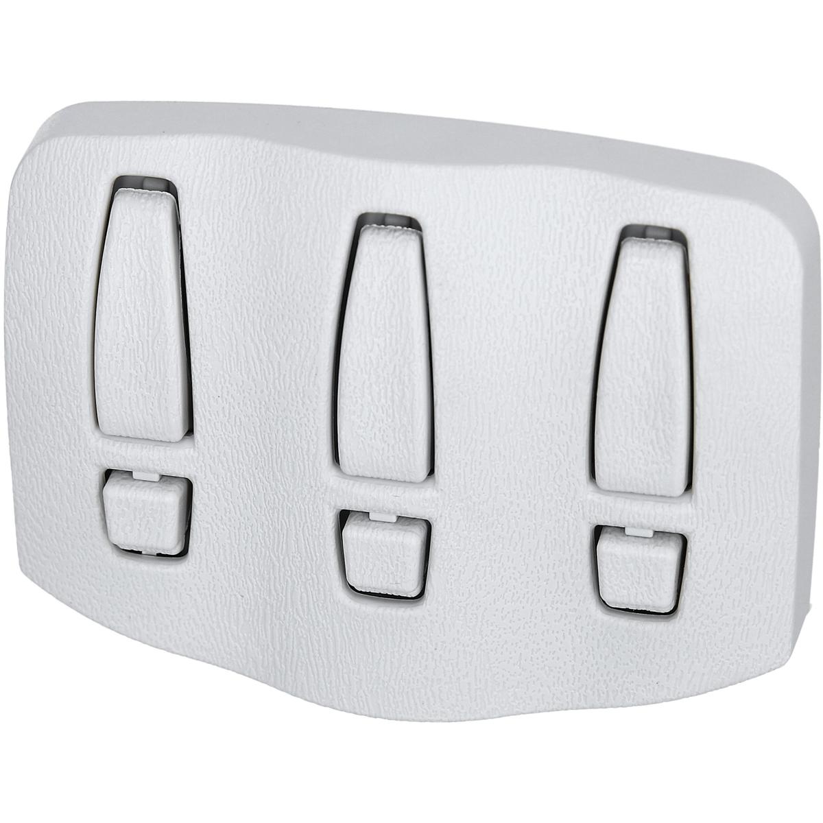 Moderner Wandhaken mit 3 ein-/ausklappbaren Haken. einfache und schnelle Montage an dern wand manuellem Druck je Haken Technische Daten: Farbe: lichtgrau Maße (B x T x H): 18 × 10 × 2 cm Gewicht: 100 g inkl.Schraubenset