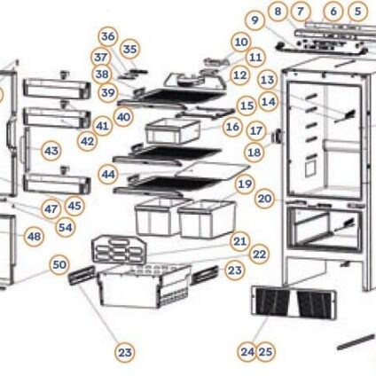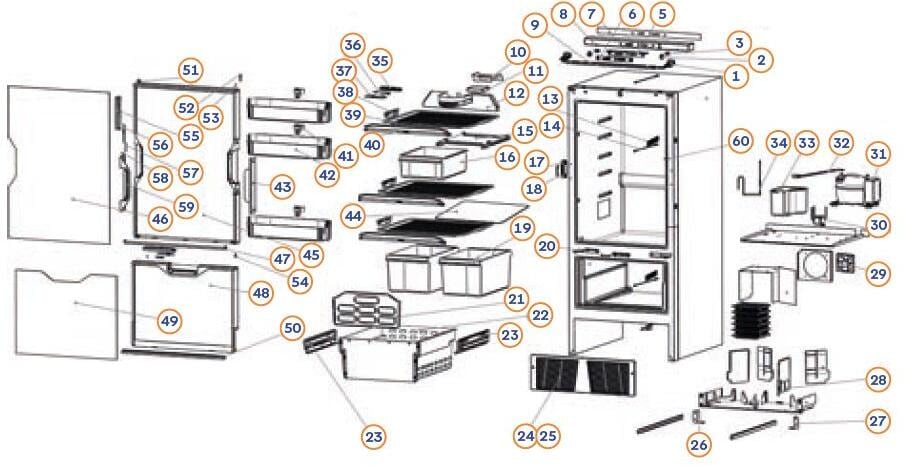 Frostfachtüre mit Dekorplatte für Kühlschrank T2160/2175 Kompressor Thetford Ersatzteil Nr. 692859 Abbildung Nr. 48 – 49