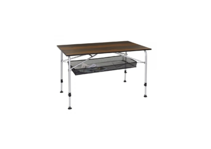 Extrem leichter Campingtisch mit sehr stabiler Tischplatte aus Composite Material. Die Tischplatte ist wetterfest und UV-stabil. Alle vier Tischbeine sind mittels eines praktischen Klappmechanismus von 59 bis 72 cm in der Höhe stufenlos einstellbar. Inklusive Ablagenetz und Bodennägel. Tischplatte in Holzoptik aus hochwertigem Composite-Material robuster Aluminiumrahmen wetterfest & UV-stabil inklusive Ablagenetz und Bodennägeln stufenlos höhenverstellbar von 59 – 72 cm Technische Daten: Gewicht: 5,8 kg…