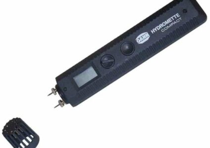 Innenraum-Holzfeuchtigkeitsmessgerät Typ S. Messbereich: 10 – 50% Holzfeuchte mit großer 3-stelliger Anzeige Handlicher Schnellfeuchtmesser in Taschenformat. Fest angebaute Elektroden für Holzstärken bis ca. 30 mm. Vollautomatischer Geräteabgleich Technische Daten: Abmessungen: 200 x 35 x 365 mm Gewicht: ca. 130 g Lieferumfang: Gerät incl. Aufbewahrungsbox, 9 Volt-Blockbatterie