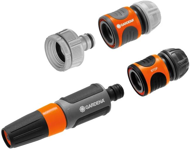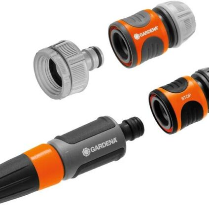 Komplettset für eine schnelle Wasserhahn- und Schlauchverbindung. Mit diesem Satz erhalten Sie alle Original GARDENA Systemteile und eine Reinigungsspritze zum sofortigen Einsatz des Schlauchs. Technische Daten: Anschluss: Passend für 13 mm (1/2) und 15 mm (5/8”) Schläuche und Wasserhahn mit 26,5 mm (G 3/4) und 33,3 mm (G 1) Gewinde Farbe: anthrazit/orange Lieferumfang: 1 x Reinigungsspritze 1 x Schlauchverbinder 1 x Hahnverbinder 1 x Adapter