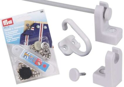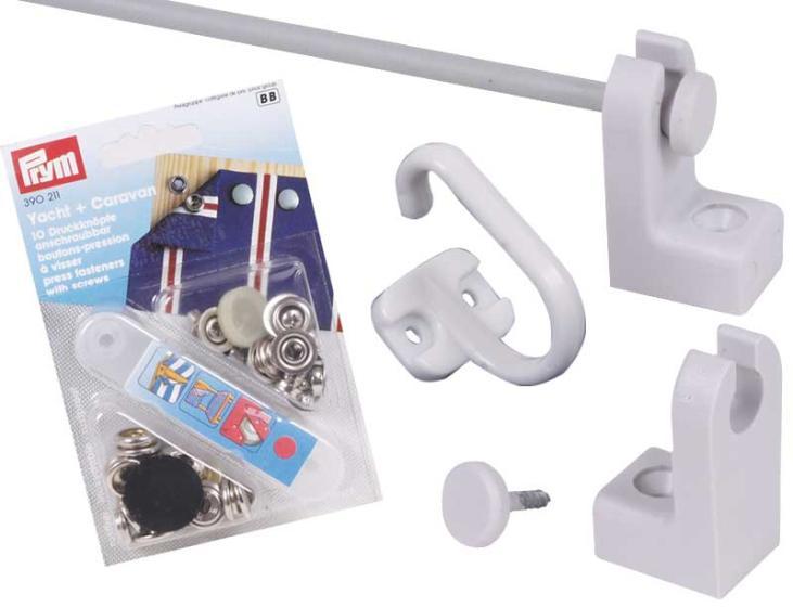 Komplett-Set zur Befestigung von Gardinen im Reisemobil, Caravan usw. Ausreichend für 5 Fenster im Kleinbus Set bestehend aus: 15m Spannfix hellgrau 10 x Montageset 10 Druckknöpfe 10 Gardinenraffer