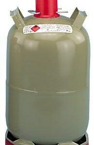 Graue 11kg Propangasflasche mit Ventil und Schutzkappe. Die Tausch- oder Eigentumsflasche ist amtlich geprüft und aus lackiertem Stahlblech. Technische Daten: Füllmenge: 11 kg Höhe: 59 cm Durchmesser: 30 cm Leergewicht ca. 10,5 kg