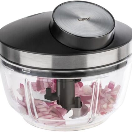 Kompakt und vielseitig einsetzbar übernimmt dieses Multitalent ganz ohne Strom das Zerkleinern von Obst und Gemüse, Nüssen, Zwiebeln und vielem mehr. Auch das Rühren und Mischen von Dip bis Dessert sind für den effizienten Multizerkleinerer ein Kinderspiel. Durch den Seilzugmechanismus gelingt ein effizientes Zerkleinern, Pürieren, Mischen, Verquirlen und Rühren von verschiedensten Zutaten im Handumdrehen und ohne viel Kraftaufwand. Je nach Länge der Anwendung können mit dem Schneideinsatz Möhren, Nüsse…