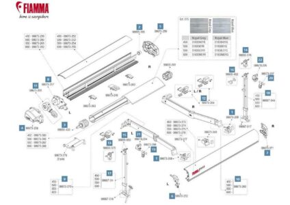 Gelenkarm links für Markisenlänge 450-600cm – Fiamma Ersatzteil-Nr. 98673-270 – passend für F80L