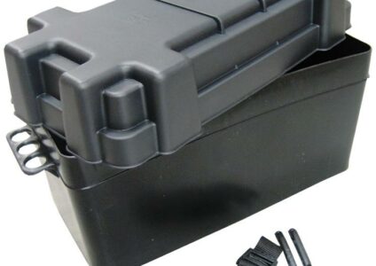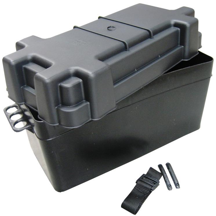 Zur Aufbewahrung der Batterie, damit diese sauber und geschützt ist. Technische Daten: Größe außen (LxBxH): 47 x 22 x 25 cm Größe innen (LxBxH): 38 x 17 x 22 cm Lieferumfang: Kunststoffbox mit Deckel und Band