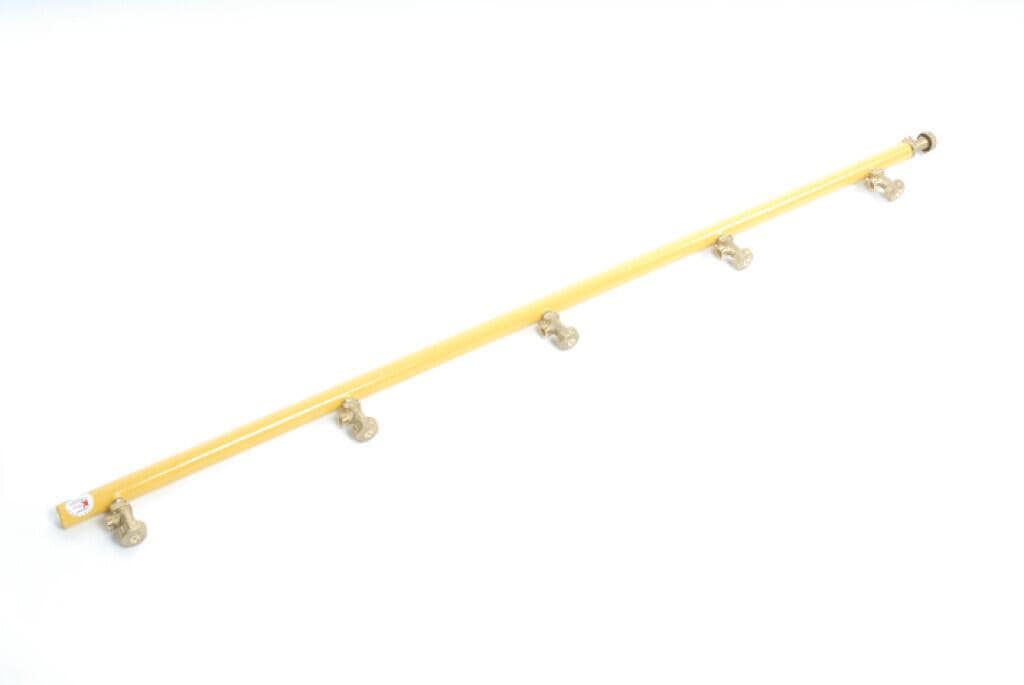 Gimeg 5 Anschluss Leitung mit Endhan.Zum Anschluss von 5 Gasflaschen + EndhahnTechnische DatenBreite: 10 cmLänge: 160 cmDurchmesser: 3,5 mmMaterial: StahlGewicht: 4,5 kgFarbe: gelbLieferumfang:Leitung mit Endhan und fünf Anschlüssen