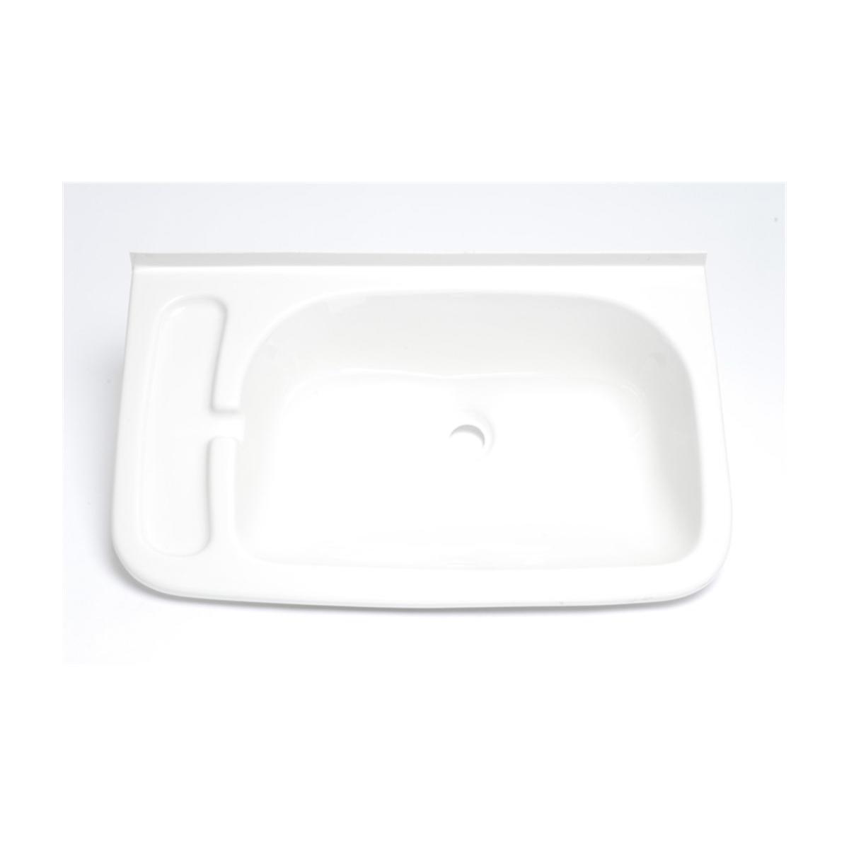 Ohne Ablassschraube. Mit 2 integrierten Seifenschalen. Technische Daten: Öffnung: 30 mm Maße: 87 x 33 x 13 cm Farbe Polarweiß