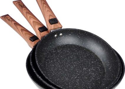 Das Pfannenset Black Line aus Aluminium Druckguss in 4,5 mm Stärke ist nicht nur wie alle anderen Gimex Kochtopfsets 3 fach antihaftbeschichtet und damit besonders robust und von höchster Qualität, sondern auch induktionsfähig. abnehmbarer Griff mit Holzdekor für alle Herd Systeme geeignet Technische Daten: Pfanne ø 22 cm = 615 g Pfanne ø 24 cm = 670 g Pfanne ø 26 cm = 745 g Material: Aluminium Guss / Griff ABS Gewicht: 2,144 g