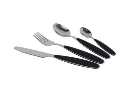 Besteckset aus Edelstahl 18/0 mit Messer, Gabel, Löffel, Teelöffel und softem Griff. Passend zur GreyLine und Rainbow Serie. spülmaschinengeeignet Technische Daten: Farbe: schwarz Material: Edelstahl + Kunststoff Maße (B x T x H): 170 × 65 × 255 mm Gewicht: ca. 600 g Lieferumfang: 4 Messer 4 Gabel 4 Löffel 4 Teelöffel