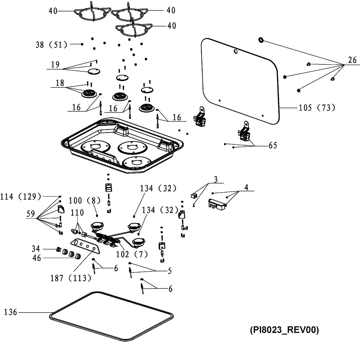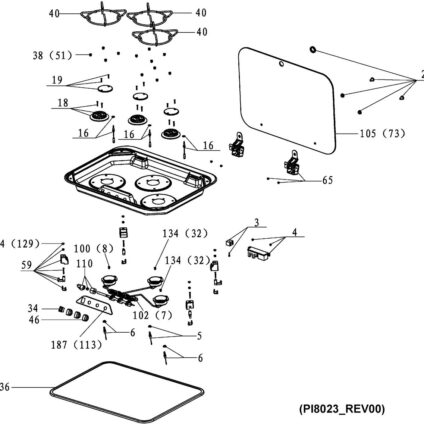 Glasabdeckung für Dometic-Kocher HBG 3440, Kochermaße 56 x 44 cm Dometic Ersatzteil Nr. 4453001435 Abbildung Nr. 73