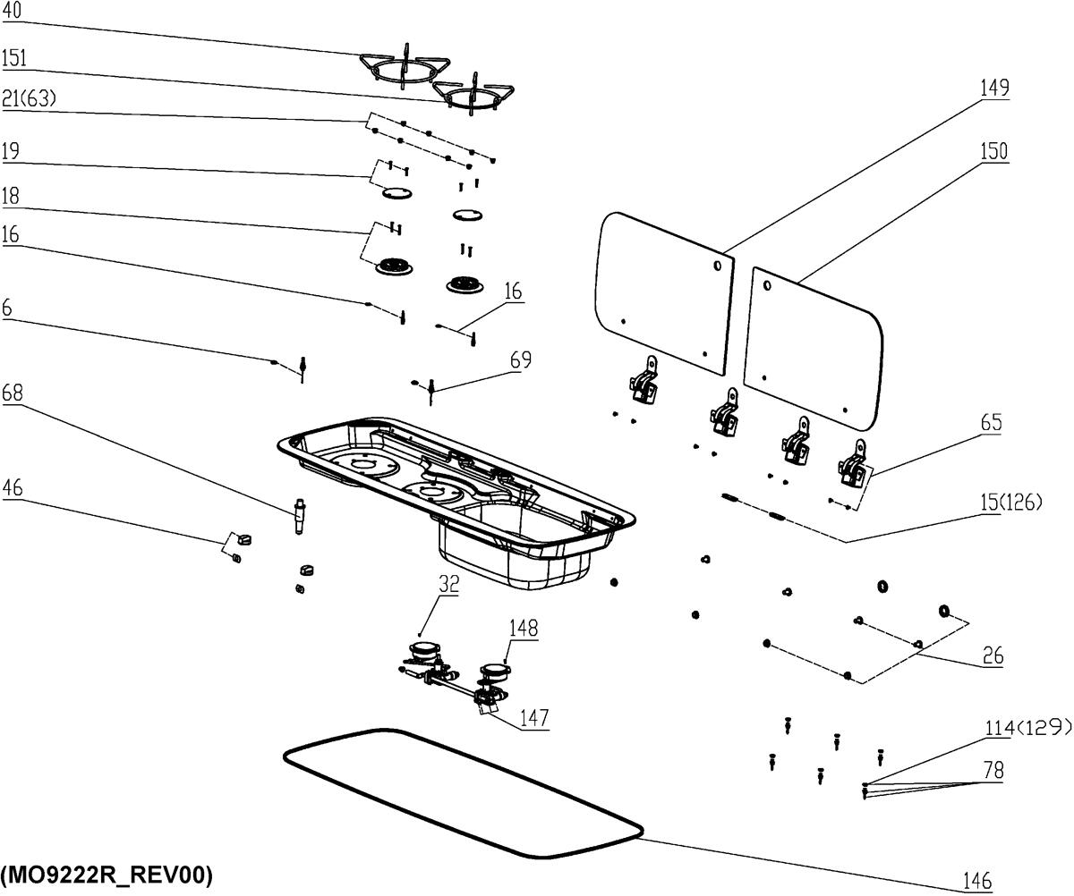 Glasabdeckung für Dometic-Kombination MO 9222R, Becken rechts, Maß Kombination 90 x 37 cm.Dometic Ersatzteil Nr. 4453001500Abbildung Nr. 150