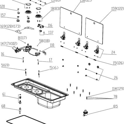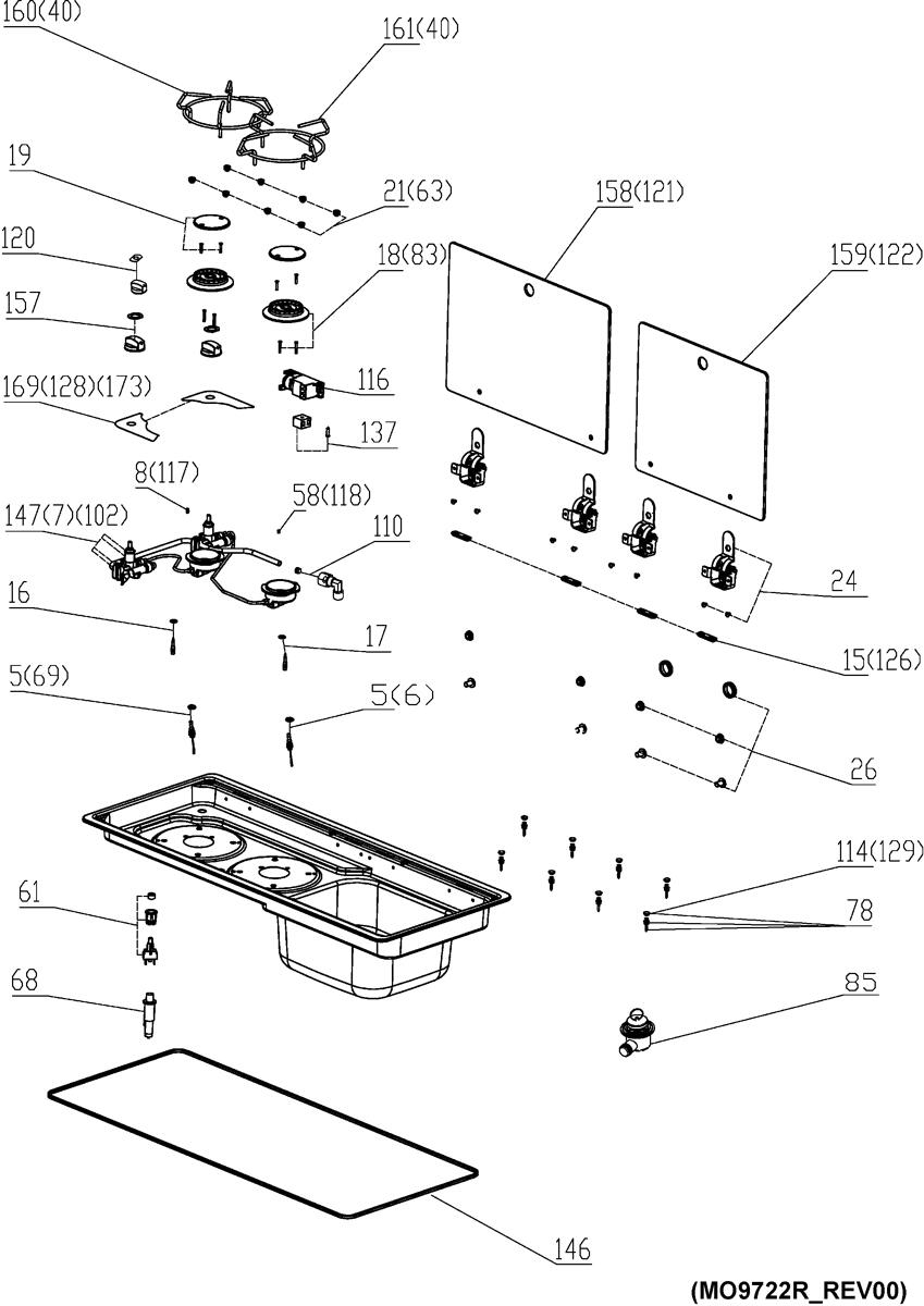 Glasabdeckung für Dometic-Kombination MO 9722L, Kocher links, Maß Kombination 76 x 32,5 cm.Dometic Ersatzteil Nr. 4453001508Abbildung Nr. 158