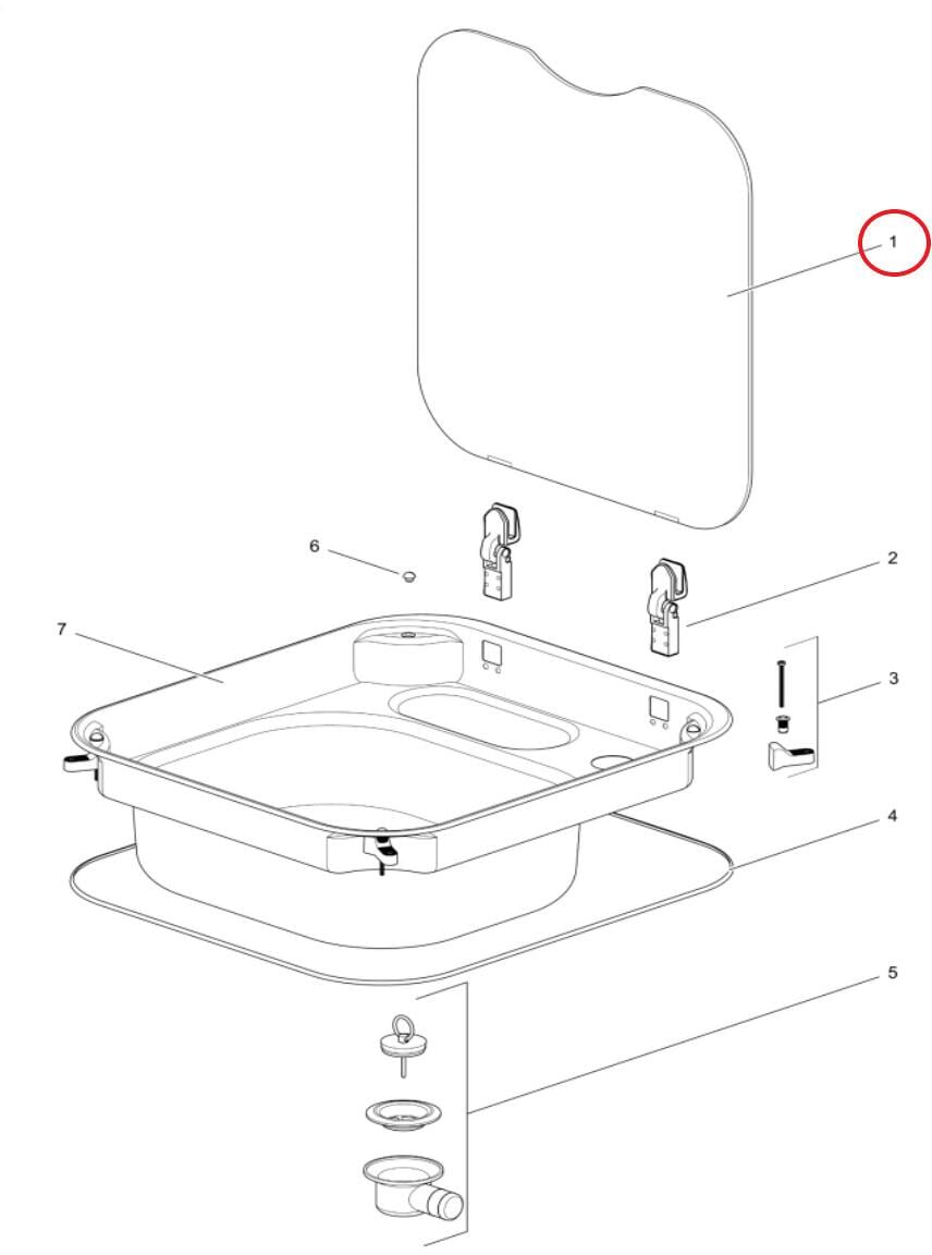 Glasdeckel, smoked für Spüle SBL34XX. Thetford Ersatzteil-Nr. SSPA1753 Abbildung Nr. 1