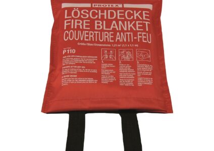 Löschdecke aus silikonbeschichtetem Glasfasergewebe in der praktischen Softbox mit Einhängeöse zugelassen nach DIN EN1869:2001 Maß: ca. 1.100 x 1.100mm Flächengewicht: ca. 340g/m² mit Gebrauchsanweisung in deutsch/englisch/französisch. geeignet für handelsübliche Fritteusen und Fettbackgeräte bis max. 3 l Fassungsvermögen