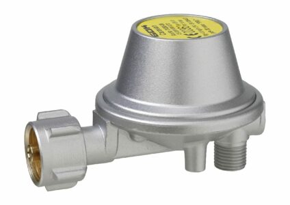 L-Form Niederdruckregler zum Einsatz in Caravan und Reisebobil. Nur für den Einsatz im Reisemobil-Gaskasten oder im Caravan-Deichselkasten zugelassen.Nicht für Camping und Freizeitbereich zulässig.Ideal für Gaskästen und kleine Freizeitfahrzeuge. Mit Sicherheitsablass-Ventil PRV Mit Entlüftungsstopfen DIN-DVGW-geprüft Technische Daten: Leistungsstufe: 1 Typ: EN61 mit PRV Abgang: 90° Durchfluss: 0,8 kg/h Anschluss: KLF* auf 1/4-Lingsgewinde Betriebsdruck: 30 mbar *KLF: Kleinflaschenanschluss für…
