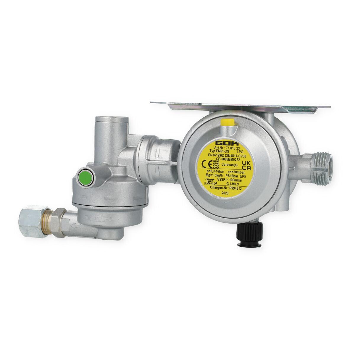 Sicherheits-Gasdruck-Regelanlage zum Betrieb von Einflaschenanlagen in Caravans und Motorcaravans während der Fahrt. Das Heizen während der Fahrt ist durch integrierten mechanischen Crash-Sensor, der bei einem Unfall mit einer direkt auf das Auslöseelement einwirkenden Verzögerung von 3,5 g ± 0,5 g den Gasdurchgang absperrt, möglich. Dies entspricht bei einem mittleren Fahrzeuggewicht einer Aufprallgeschwindigkeit von ca. 15 bis 20 km/h auf ein festes Hindernis. europaweite Verwendung durch den Einsatz…