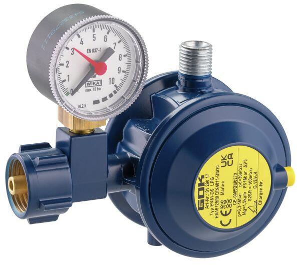 GOK Gasregler EN61-DS (KLF x G1/4LH-KN-90G UEDS Man. Marine), 1,5kg/h, 30mbar