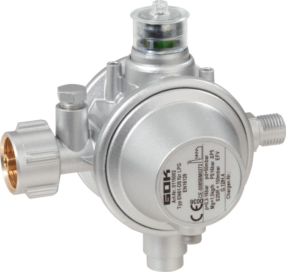 GOK Gasregler EN61-DS (KLF x G1/4LH-KN UEDS SBS), 1,5kg/h, 29mbar, gerade