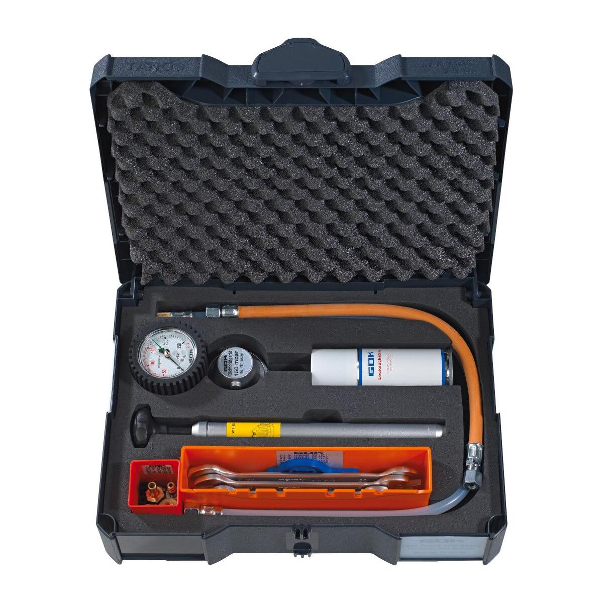 Leak Check LPG BASIC – Elektronisches Dichtprüfgerät mit allen erforderlichen Montageteilen zur Druck und Dichtheitsprüfung von Flüssiggasanlagen in Freizeitfahrzeugen bzw. in kleinen Wasserfahrzeugen. Bestehend aus: 1x Dichtprüfgerät 150 mit Druckbegrenzer, 1x Prüfschlauch für die Prüfeinrichtung, 1x Mitteldruck-Schlauchleitung für Flüssiggasleitungen, 1x Handgriff für Prüfventil, 1x Stecknippel Niro STN x RST 8 zum Anschluss des Prüfgerätes an Steckkupplung SKU, 1x Gerader Reduziereinsatz Typ RED RST…