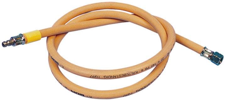 Gasschlauch für Anschluss an Gassteckdose Produktmerkmale: kältebeständig bis -30° C. 1x Stecktülle, 1x 1/4“ Linksgewinde für Grill und Kocher